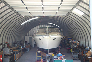 Curvco offers the strongest and most durable protection available for your valuable boats, trailers and tow-vehicles. Our boat storage building kits are custom manufactured to your exact size specifications, allowing for over-sized doors to get travel-lifts in and out. Our heavy gauge steel is coated with Galvalume for maximum protection in coastal areas against rust and corrosion. Sleep easy at night knowing your valuable investments are protected by a Curvco steel building.