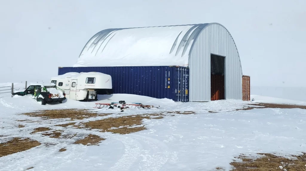 Maximize your space with Curvco’s steel container canopies. These roof systems stretch between two shipping containers, instantly creating a covered area for tools, machinery, or work zones—no major groundwork required.