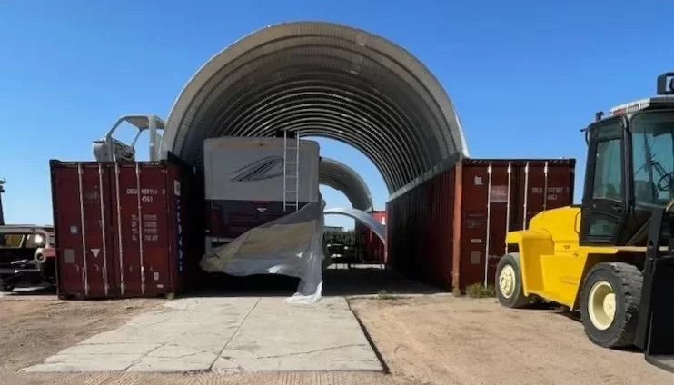 Need extra space fast? Our steel canopies are designed to span between shipping containers, instantly adding covered storage. Whether for residential or commercial use, these systems require minimal groundwork and can be enclosed for added protection of your tools, machinery, or inventory.